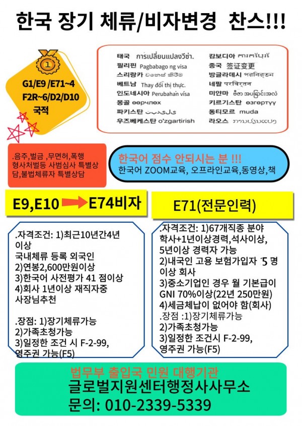 베트남 E71(특정 활동: 장기 합법비자) 취업 가능한 / 회사/공장/ 사무실 일자리찾습니다. (010-2339-5339)