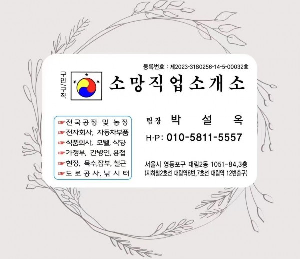 문자로 인적사항과 찾는 일자리 남겨주시면 연락드리겠습니다.