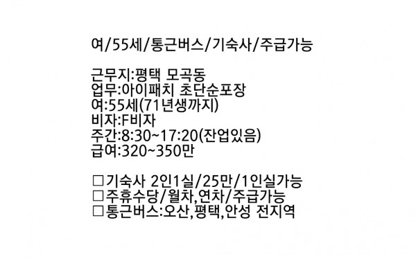 2.남녀/45세/설비,인쇄/ 450만/기숙사(소개비있음)